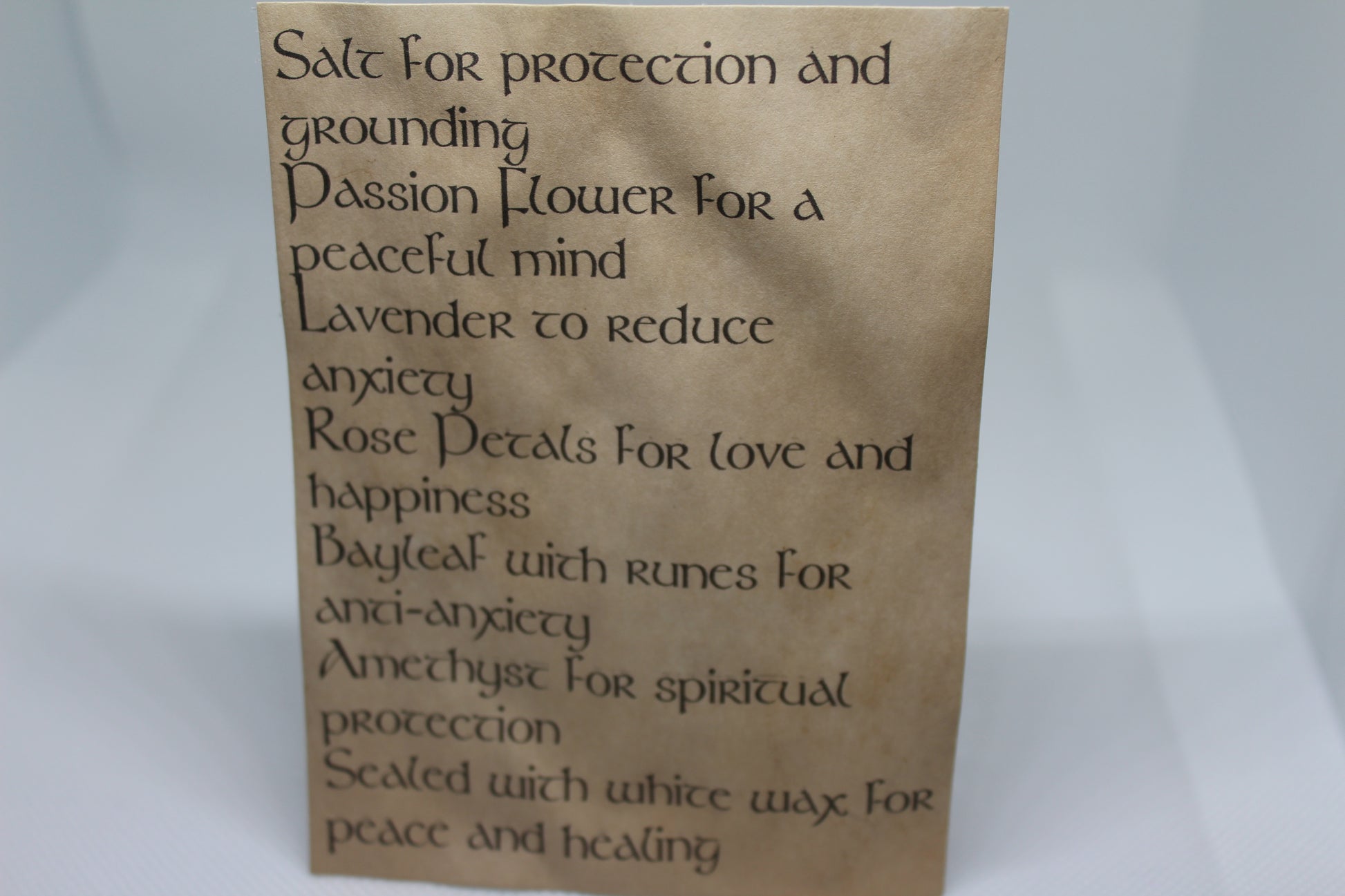 Each jar comes with a scroll about the intentions of each ingredient.